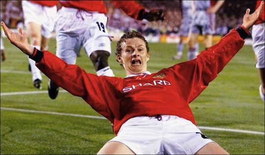 Ole Gunnar Solskjaer è l’unico a non correre incontro a Sheringham per festeggiarlo. Si avvia verso il centrocampo. E’ teso, concentrato. Sa che i trenta minuti dei supplementari richiedono il massimo di energie psico fisiche.