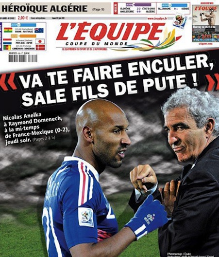 L’Equipe può gestirsi senza problemi di concorrenza. Chi ama lo sport, dal calcio alle bocce, ha una sola scelta. Credo che in quelle condizioni sia più semplice decidere cosa mettere in copertina. E poi, è vero, c’è una divrsa mentalità. Pensate che da noi un titolo del genere (foto sotto) sarebbe stato possibile?