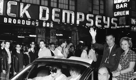 Jack Doc Kearns esulta. E’ il manager di Dempsey e ha puntato 10.000 dollari su una vittoria per ko al primo round del ragazzo. Corrono tutti negli spogliatoi per festeggiare.