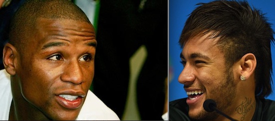 Guardavo Neymar e mi sembrava di vedere Mayweather (a sinistra nella foto), fenomeno del pugilato e campione del mondo in cinque differenti categorie di peso.