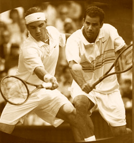 Solido dentro e fuori dal campo Roger riesce ad incantarti soprattutto con il rovescio, con la capacità di capire un attimo prima cosa fare, per quel senso straordinario di leggere la partita. Ieri ha giocato un match perfetto contro un Sampras sempre molto forte, ma al di sotto di quello che eravamo abituati a vedere sull’erba del suo giardino.