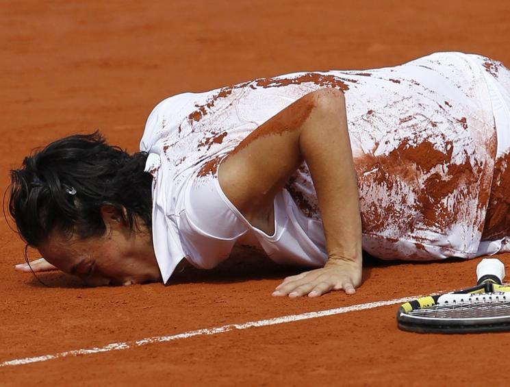 Ogni punto raccolto è un abbraccio, un bacio, una carezza. Perché Francesca ha bisogno d’amore: “E’ il dono più grande della vita”, mi ha detto tempo fa. L’anno scorso ha prima baciato e poi mangiato la terra rossa del Philippe Chatrier. Ha ripetuto il gesto anche stavolta. Si rotola per sporcarsi il bianco del completino, per sentire sulla pelle la terra del campo. Una gestualità pagana che le permette di vivere l’avventura sino in fondo.