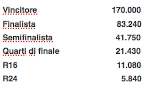 In pratica chi esce al primo turno porta a casa 10.185 euro.