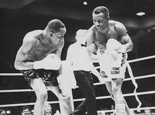 5. Pryor-Arguello, 12 novembre 1982 Miami (sopra, Arguello a destra). Un grande incontro, macchiato dal giallo della “bottiglia nera”, quella che Panama Lewis, il coach di Pryor, chiede ai suoi uomini nel tredicesimo round. “Quella che ho preparato io”. In aggiunta c’è da ricordare che la Commissione di Miami non ha espleta l’antidoping. Il match è classificato 8°, tra i migliori cento di sempre, da “The Ring”.