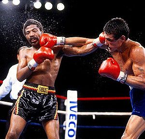 3. Hagler-Mugabi, 10 marzo 1986 Las Vegas. Un incontro pazzesco. Mugabi onora il suo soprannome, “la bestia”, per la ferocia con cui lo affronta. Hagler resiste ad ogni colpo, anche a un devastante montante nel sesto round, e vince.