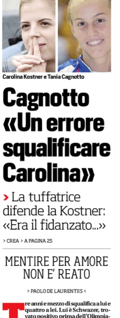 IL CORRIERE dello Sport e Tania Cagnotto dicono che mentire per amore non è reato.