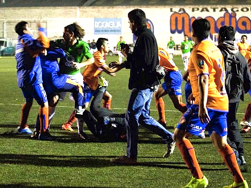 Il difensore centrale del Cipolletti si ferma un attimo, poi viene colto da raptus improvviso e si lancia in una corsa sfrenata di sessanta metri attraverando tutto il campo per colpire Fernandez prima che rientri nel tunnell degli spogliatoi.