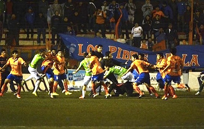 Partita tutto sommato tranquilla fino al 22’ della ripresa, con gli ospiti in vantaggio di 1-0 grazie a un gol di Oscar Negri. È a quel punto che si scatena “La Batalla del Maiolino”, dal nome dello stadio Luis Maiolino (https://www.youtube.com/watch?v=QuhqFVuNesw), il video è di Cipolletti Tv.