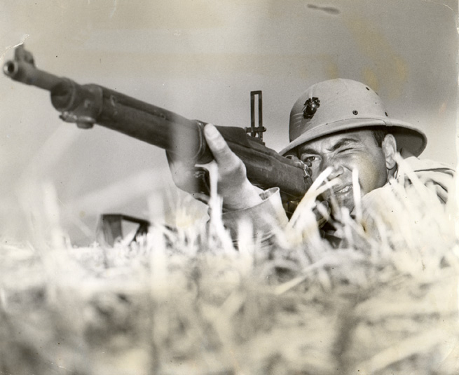 Scoppiata la guerra si era arruolato nei Marines. Avrebbe potuto fare il servizio militare senza rischiare. Il governo degli Stati Uniti non negava mai un ruolo di rappresentanza agli eroi dello sport.