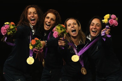 Erano militari tutti i vincitori delle medaglie d’oro: cinque per le prove individuali e undici per quelle a squadre. Nella foto: Elisa Di Francisca (Fiamme Oro), Arianna Errigo (Carabinieri), Valentina Vezzali (Fiamme Oro) e Ilaria Salvatori (Aeronautica).