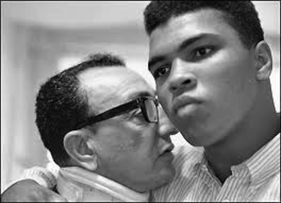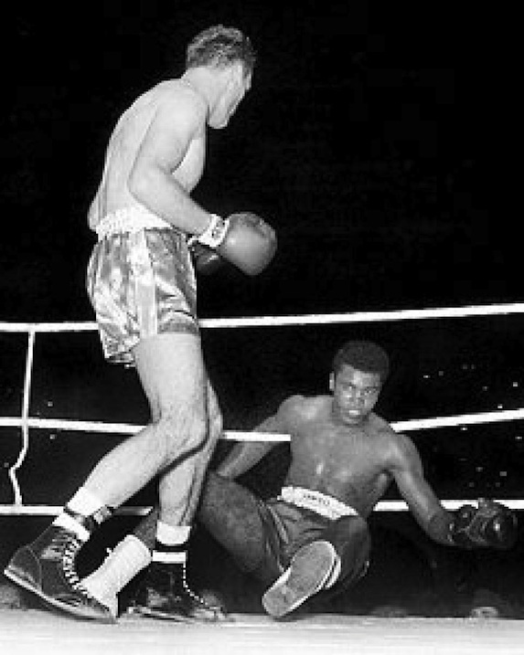 L’arbitro inizia il conteggio. È arrivato a quattro quando il gong salva (allora era permesso) Cassius Clay. Da quel momento il protagonista diventa Angelo Dundee.