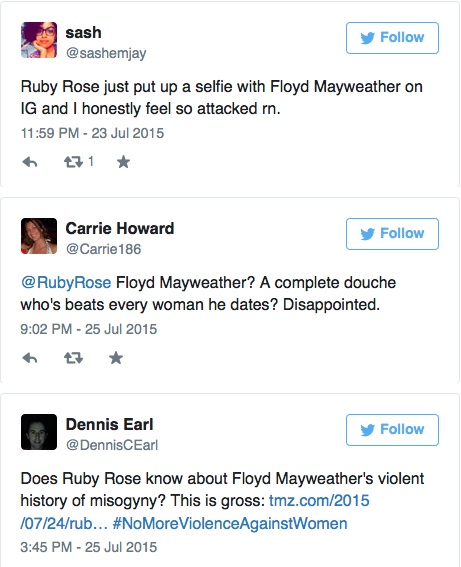 “Ruby Rose conosci la storia di violenta misogenia di Floyd Mayweather?”
