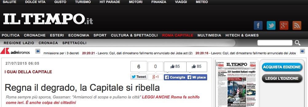 Il Tempo. “Regna il degrado, la Capitale si ribella”.