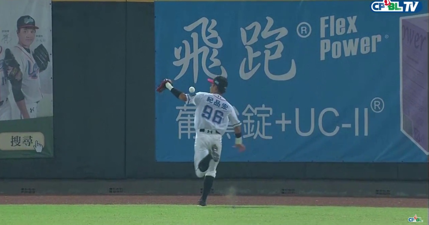 Fin qui saremmo nella normalità, ma guardate un po’ come il giocatore dei Lamigo Monkeys riesce a catturare la pallina senza farla cadere sul terreno di gioco.