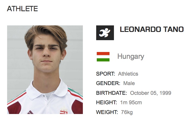 Leonardo pratica l’atletica leggera, il salto in alto. Ha fatto parte della nazionale magiara impegnata a Tbilisi in Georgia negli EYOF, il Festival Olimpico della Gioventù Europea: competizione multisportiva riservata agli juniores.