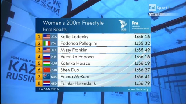 Giù dal podio dopo le prime tre vasche, poi eccola lì. Argento! Dietro la Ledecki, davanti alla Franklin. Presente, come da due lustri a questa parte. Appartiene alla storia. Come vi appartengono le sue lacrime, i dubbi, le polemiche.