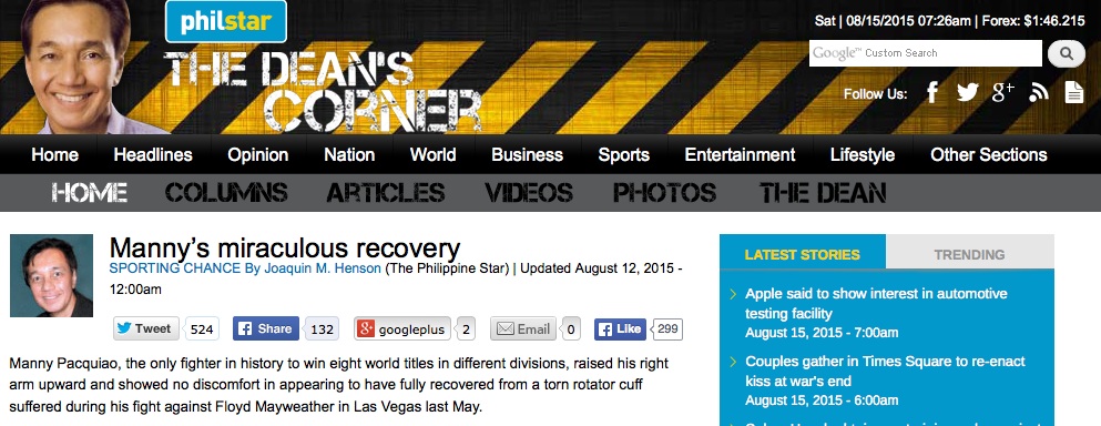 Il giornalista Joaquim M. Henson ha scritto sul Philippine Stars tre interessanti dichiarazioni.