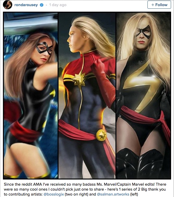 Si è auto proposta al gruppo Marvel per avere la sua immagine tra i personaggi dei supereroi. Ha postato sul suo profilo Instagram (foto sopra) le caricature che le hanno inviato tre cartoonist che sono anche suoi ammiratori.