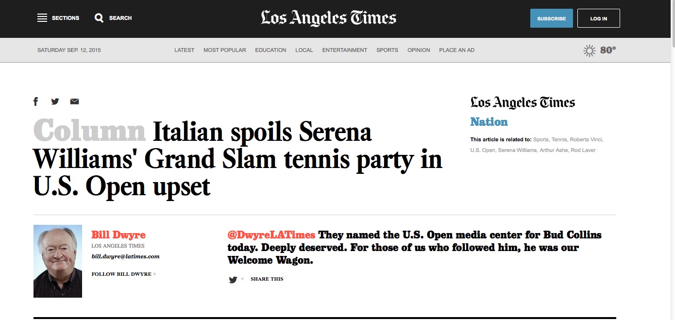 Il successo della tarantina, ma soprattutto la sconfitta di Serena, ha colpito tutta la stampa americana.