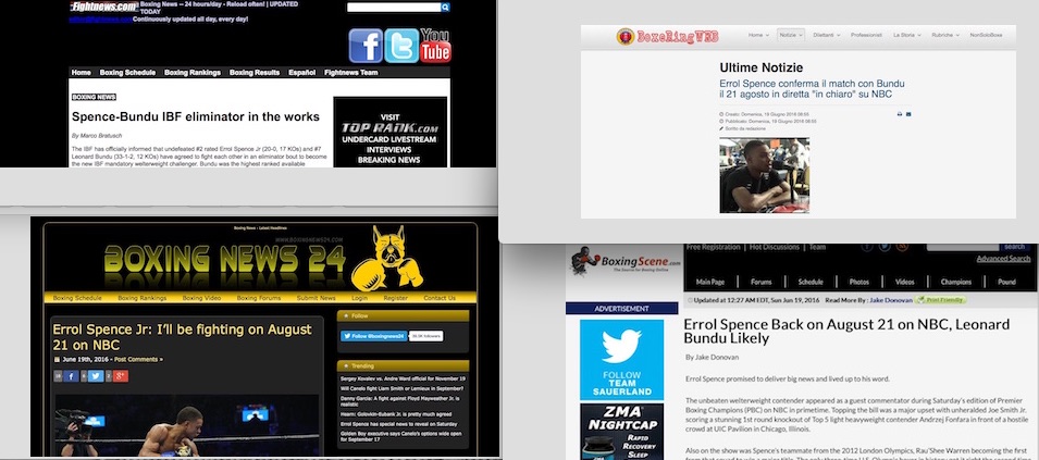 Errol Spence jr, “The truth”: la verità, ha annunciato ai microfoni della Nbc che il 21 agosto negli Stati Uniti si batterà nella semifinale del titolo welter Ibf che designerà lo sfidante di Kell Brook.