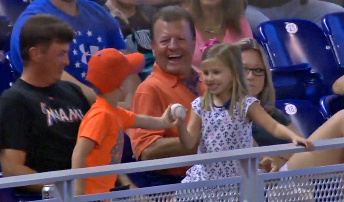Sugli spalti un piccolo tifoso raccoglie con una presa da applausi una palla fuori dalle linee, orgoglioso la stringe al petto. Poi si gira e vede una piccola tifosa, non ci pensa su due volte e le regala il trofeo appena conquistato. Lei, felice, lo ringrazia con un grande sorriso.