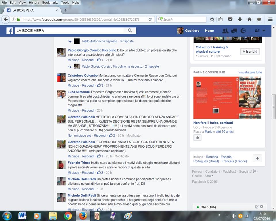 Ma sul problema del professionismo alle Olimpiadi mi hanno realmente sorpreso i due post di Gerardo Falcinelli, fratello di Franco: ex ct dell’Italia, presidente federale e attualmente vice presidente mondiale, inseriti su un’altra discussione avente identico tema all’interno della pagina LA BOXE VERA.