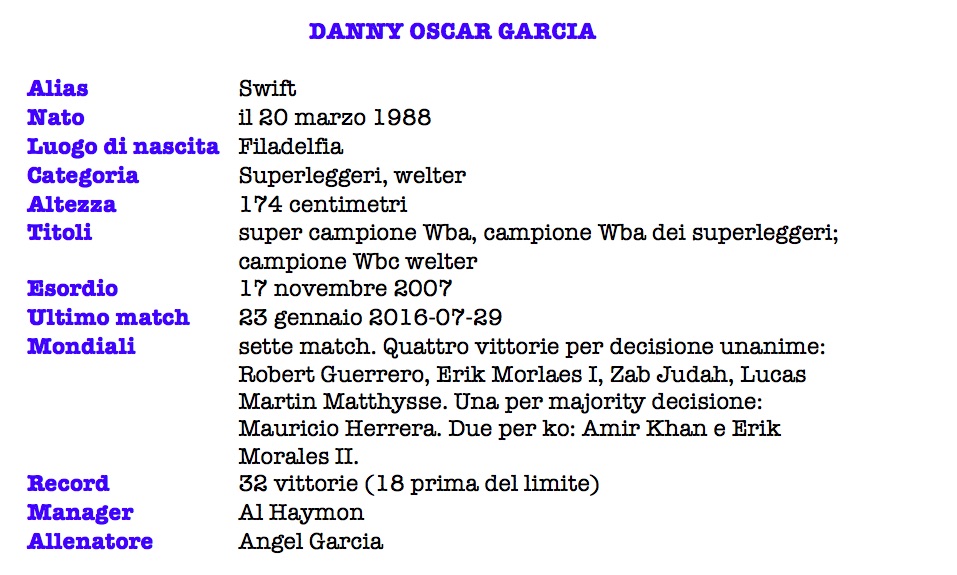 Danny è passato tra i welter, è salito di categoria. E ha vinto il titolo Wbc battendo Robert Guerrero il 26 gennaio scorso a Los Angeles.
