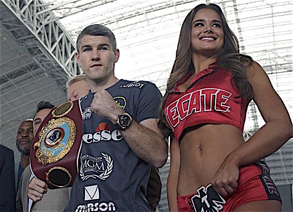 Le ring girls sono le ragazze che salgono sul ring durante il minuto di riposo del match mostrando un cartello che indica il numero della ripresa successiva (e il nome dello sponsor). Più di uno si è chiesto: importante tradizione o antiquato sessismo? Al Haymon, boss del pugilato mondiale, nel suo Premier Boxing Champions le ha cancellate dai suoi eventi. La Golden Boy Promotion di Oscar De La Hoya ha continuato a portarle sul ring, alle operazioni di peso (in alto una ragazza con Liam Smith che domani affronterà Canelo Alvarez per il titolo Wbo dei superwelter) e in conferenza stampa. I due promoter sono in disaccordo anche su questo…