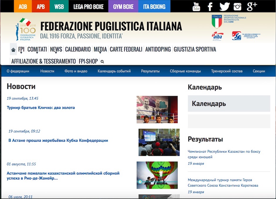 il sito della Federazione Pugilistica Italiana, ormai al 100% in lingua inglese, sta preparandosi a una nuova sfida. Pubblicare tutte le notizie in kazako.