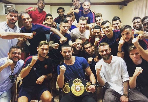 In settimana De Carolis, dopo la vittoria della squadra di Spalletti contro l’Astra Giurgiu nella Uefa Cup, è andato a far visita alla Roma (il pugile condivide con la squadra il fisioterapista Walter Martinelli). Eccolo ritratto accanto a Francesco Totti e Daniele De Rossi a Trigoria.