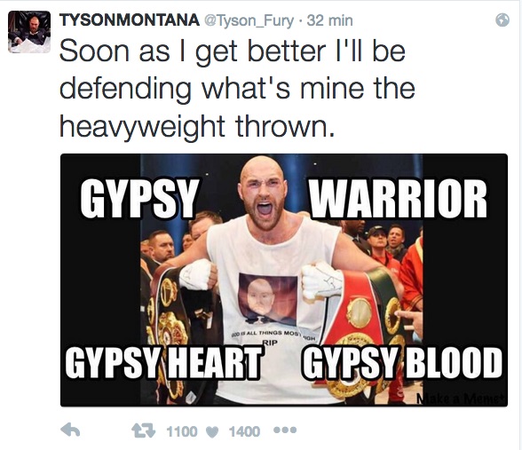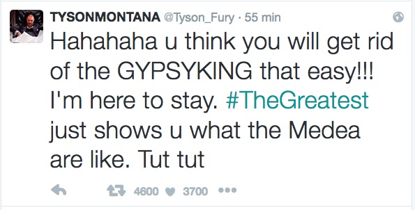 Il tutto postato sul suo profilo Twitter a cui ha cambiato nome. Ora si può trovare sotto #Tysonmontana. Il perché è di facile comprensione..