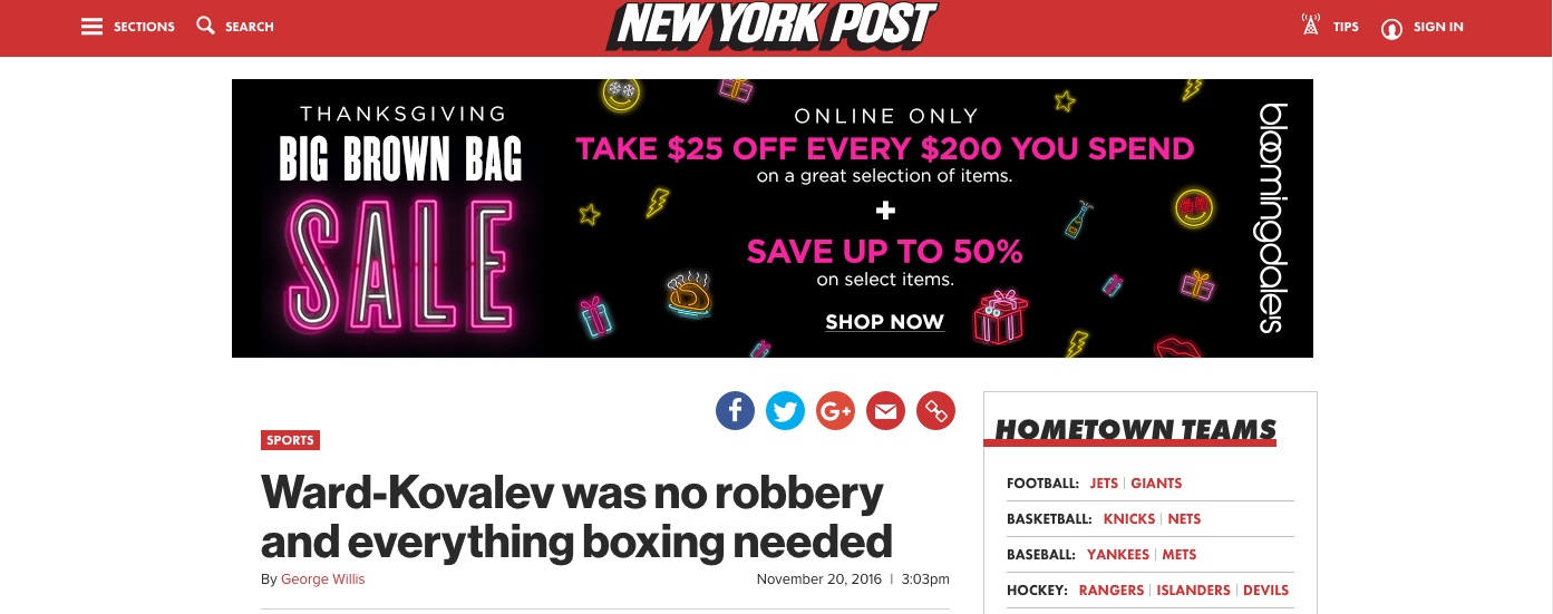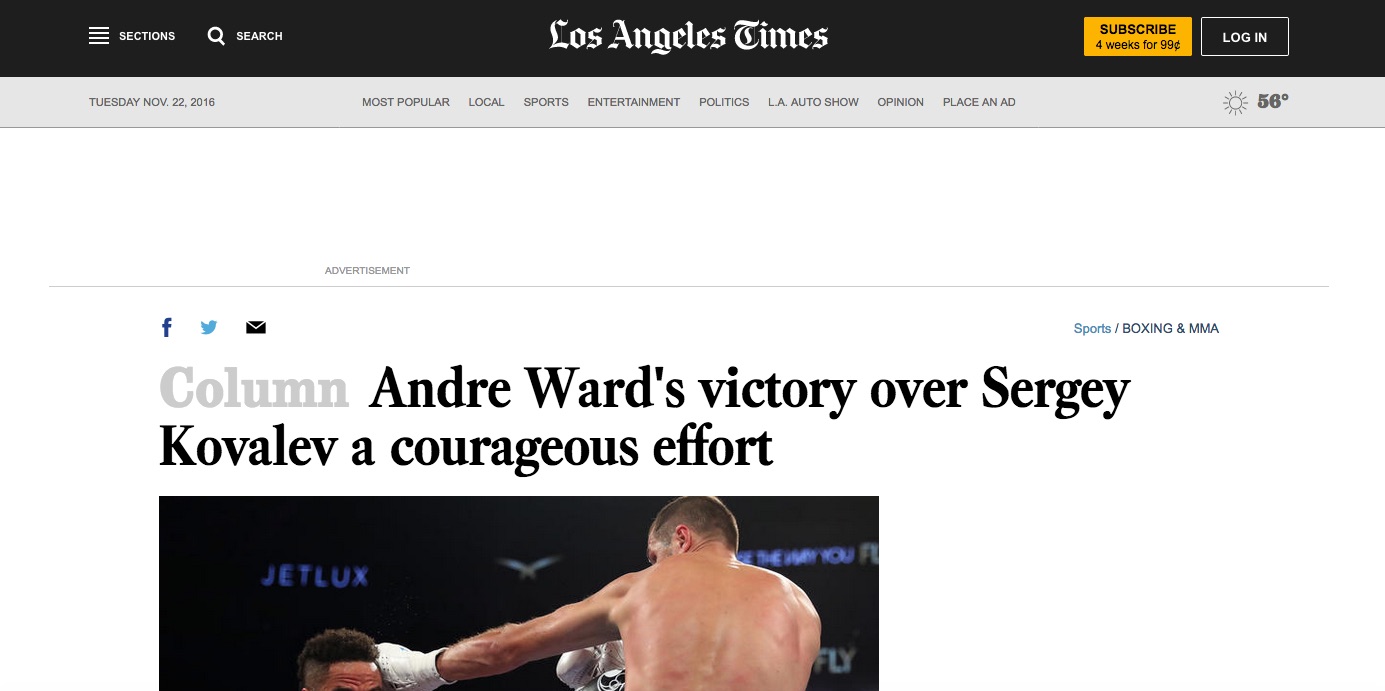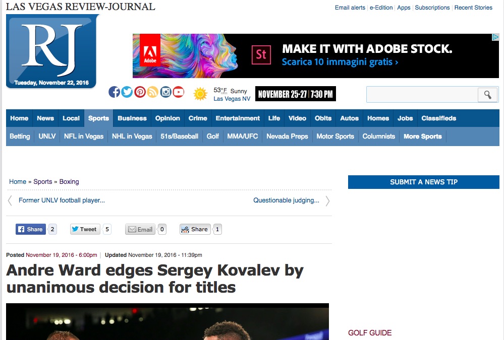 Per i giornali americani la vittoria di Ward su Kovalev è del tutto meritata…