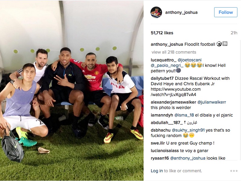 A divertirsi in campo anche alcuni giocatori della squadra locale dell’Al-Wasl.A fine partita il re dei pesi massimi Ibf ha postato su Twitter una foto che lo ritrae con i campioni del calcio. Il giocatore Ahmed El Saraf ha fatto di più. Ha messo un video su Instagram.