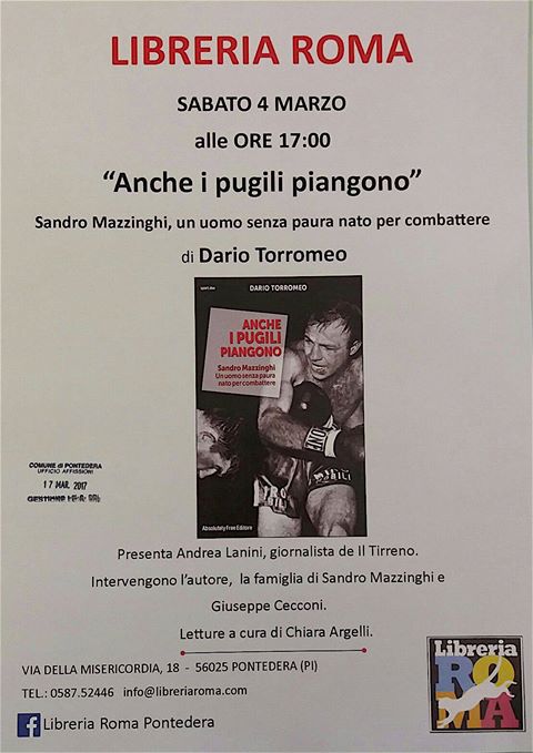 (da “Anche i pugili piangono” di Dario Torromeo, edizioni Absolutely Free, 224 pagine, 15 euro)