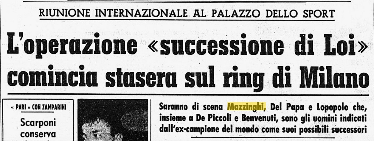 Le pagine sportive sono rette dai dubbi del Mago, Helenio Herrera non sa come gestire Maschio. A centro pagina c’è la boxe. È la chiusura di una lunga inchiesta giornalistica sul tema: “Chi sarà il successore di Loi?”.