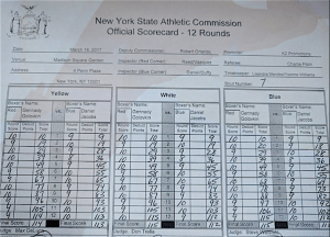 Ecco i cartellini ufficiali della New York Athletic Commission.