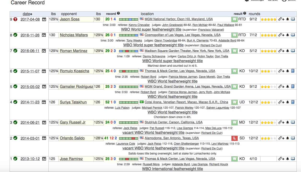 Lomachenko ha forza, ma anche mascella resistente. Un solo atterramento: è accaduto nel 2007, evidentemente un anno maledetto, a Odessa. Giù nella ripresa iniziale, ma recupero immediato e vittoria per ko.