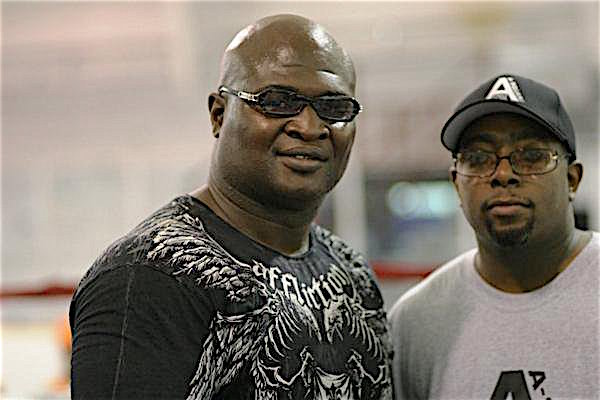 Eric (foto sopra) è rimasto nel mondo della boxe e il 13 maggio esordirà come promoter in una riunione organizzata per onorare proprio Toney (foto sotto con Eric) che dal ring di Ypsilanti darà l’addio al pugilato. Sarebbe tutto bello e romantico se James non avesse 48 anni e il suo avversario (41) non vantasse un record di 24 vittorie, 20 sconfitte e 2 pari (4-8-1 negli ultimi tredici match, sei sconfitte per knock out). Mike Shepard, questo il nome dello sfidante, ha disputato l’ultimo combattimento a 107 chili (è alto 1.88) il 29 ottobre 2016 quando ha perso per kot a due secondi dalla fine del primo round, dopo aver subito tre conteggi, contro Sergey Kuzmin.