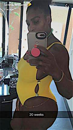 La Williams 24 ore prima aveva postato sul suo profilo Snapshot una foto in costume giallo con su la scritta “20 settimane“. Poi l’aveva tolta, ma qualche ripensamento dopo aveva confermato di essere in stato interessante di venti settimane. Appunto.
