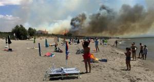 “Nella morsa degli incendi, bagnanti in fuga a Capalbio” (Il Secolo XIX).