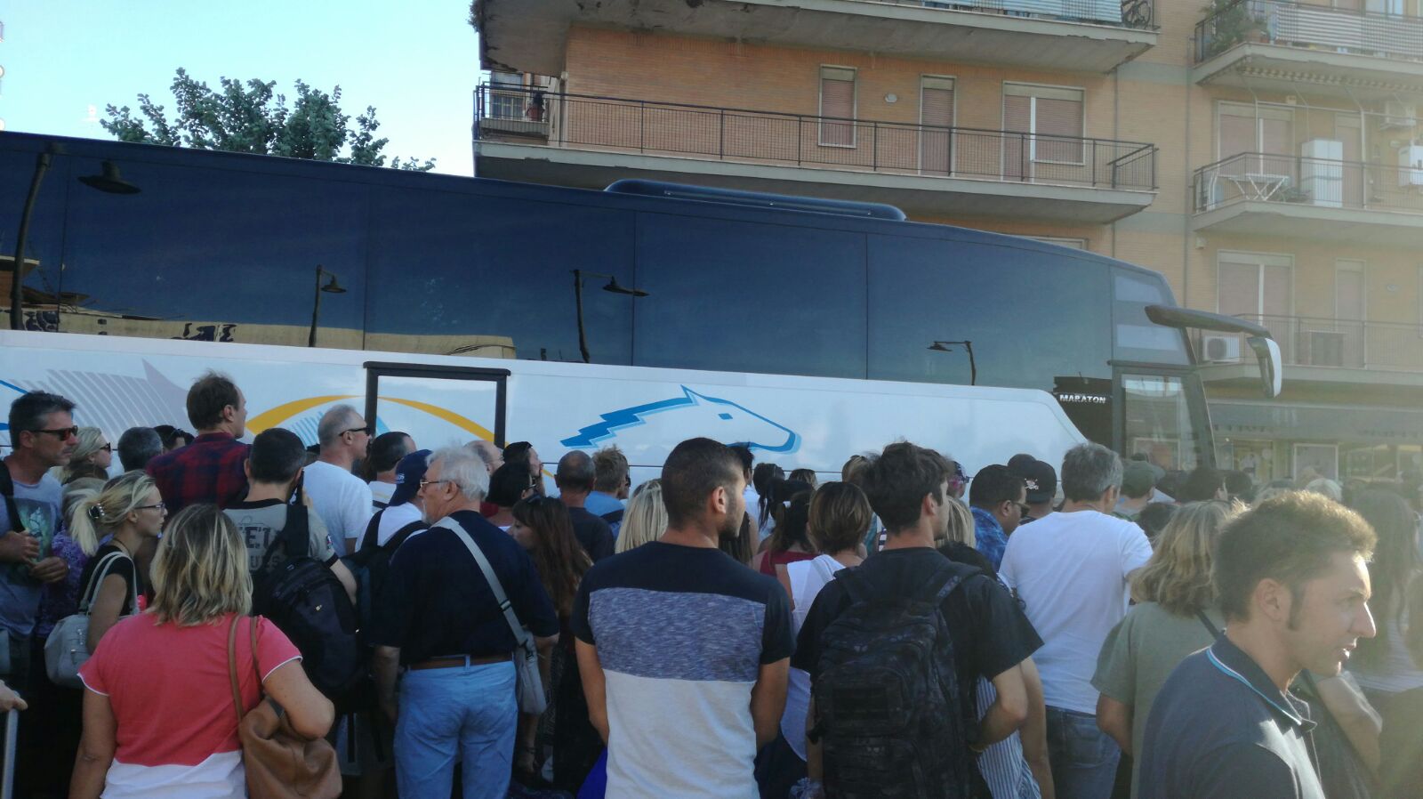 Attorno alle 23:00 il piazzale della stagione di Ladispoli era invaso da oltre mille passeggeri abbandonati nella notte. Dei bus annunciati, fino a quel momento neppure l’ombra.