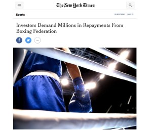 Il New York Times, che afferma di avere visto recentemente i documenti finanziari dell’Aiba, scrive: “Nonostante in un solo mese dello scorso anno i conti avessero un saldo di 9,5 milioni di dollari, in cassa attualmente risultano meno di 7 milioni di dollari”.