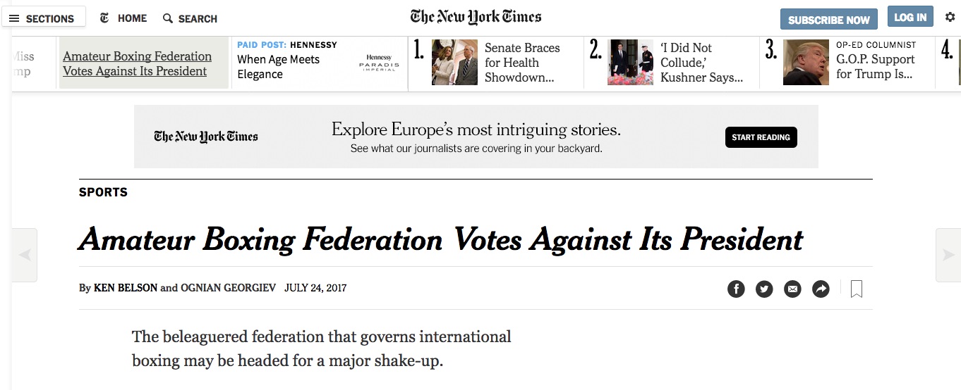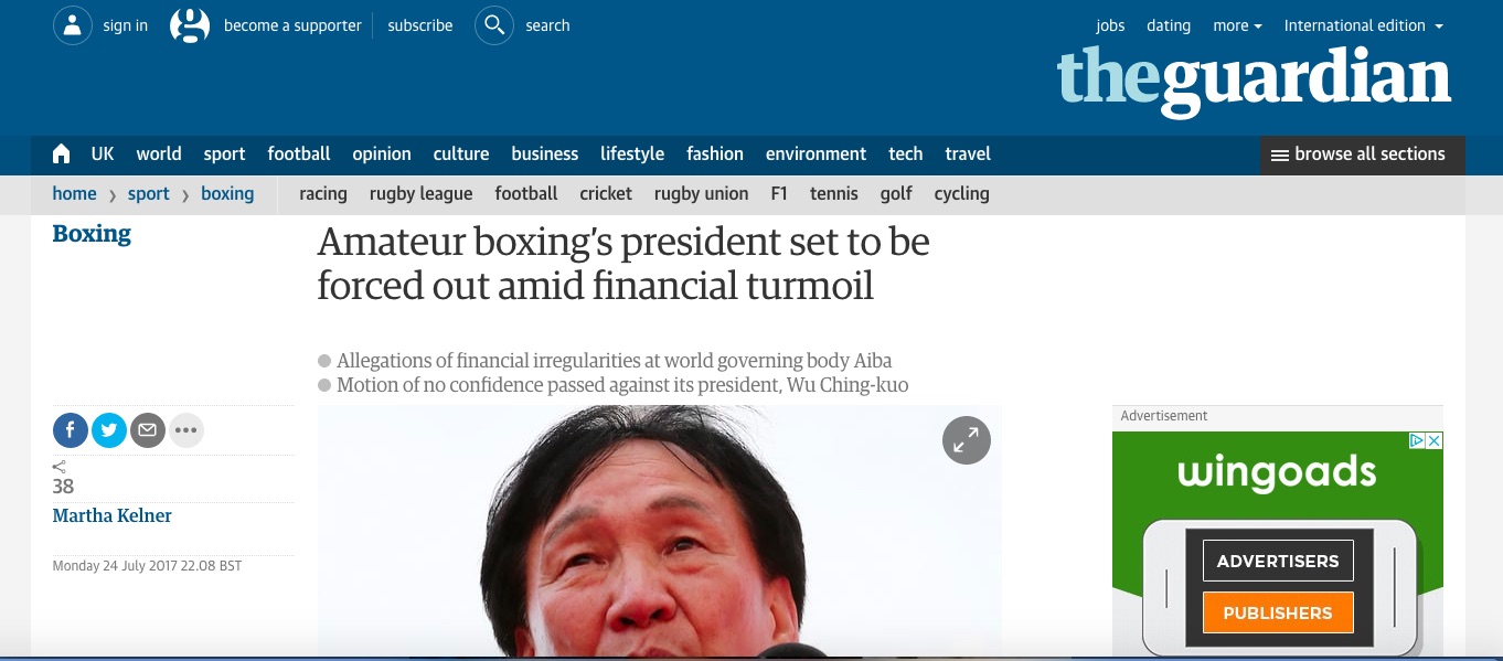 Sul “caso Aiba” ha scritto anche The Guardian che ha riportato l’importante dichiarazione di una fonte anonima, identificata come “dirigente di alto livello”: “La maggioranza è stanca di questa situazione, dobbiamo correggere gli errori fatti. Non ci troviamo davanti a qualcosa che è accaduta all’improvviso. Va avanti da troppo tempo. Ora c’è bisogno di cambiamenti. Siamo al cospetto di una cattiva gestione e subiamo le decisioni prese da una sola persona assieme a un paio di membri dello staff”.