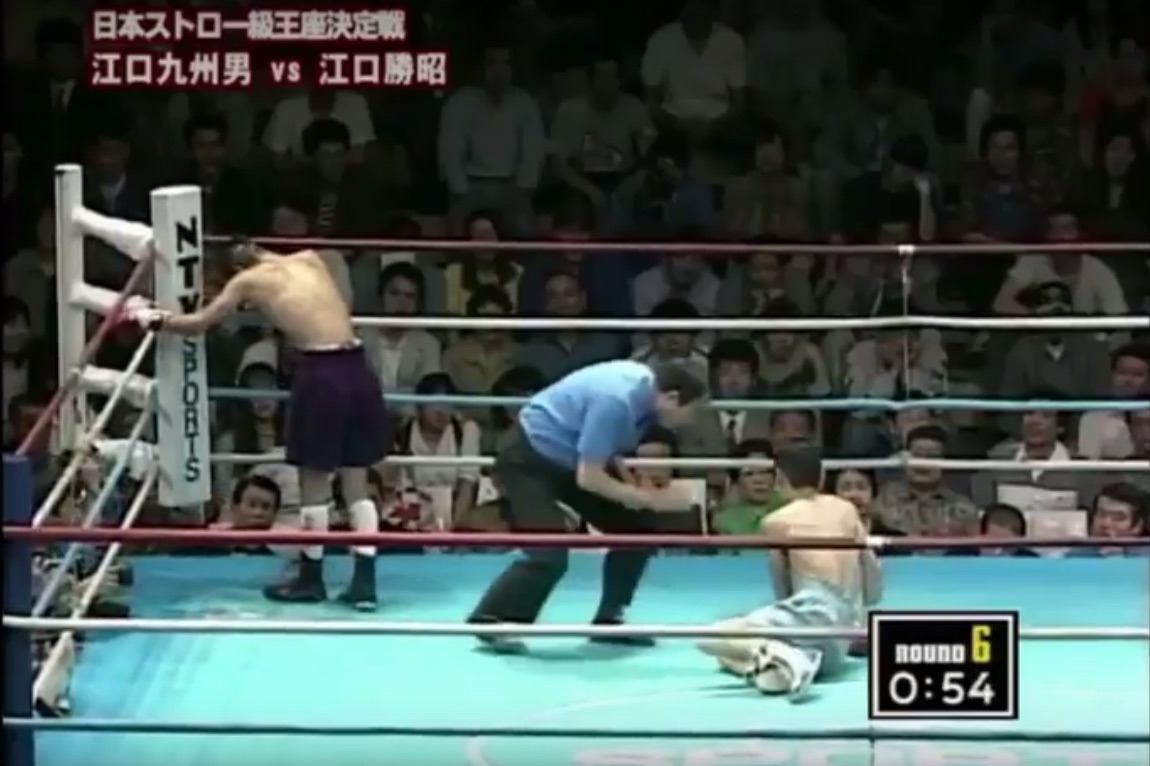 Nella sesta ripresa un devastante montante sinistro di Kusuo ha chiuso la sfida. Katsuaki è andato knock out e il fratello prima si è inginocchiato all’angolo, sempre con le spalle verso il centro del ring, poi ha cominciato a piangere. Ha pianto anche durante la cerimonia di premiazione, quando gli è stata consegnata la cintura.