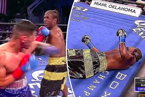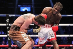 Raul Centeno jr (27-1-0, 15 ko, 1.87 di altezza), netto sfavorito, ha mandato ko dopo 2:27 della terza ripresa Immanuwel Aleem (17-1-1, 10 ko, 23 anni, 1.75) con un tremendo gancio sinistro al mento.