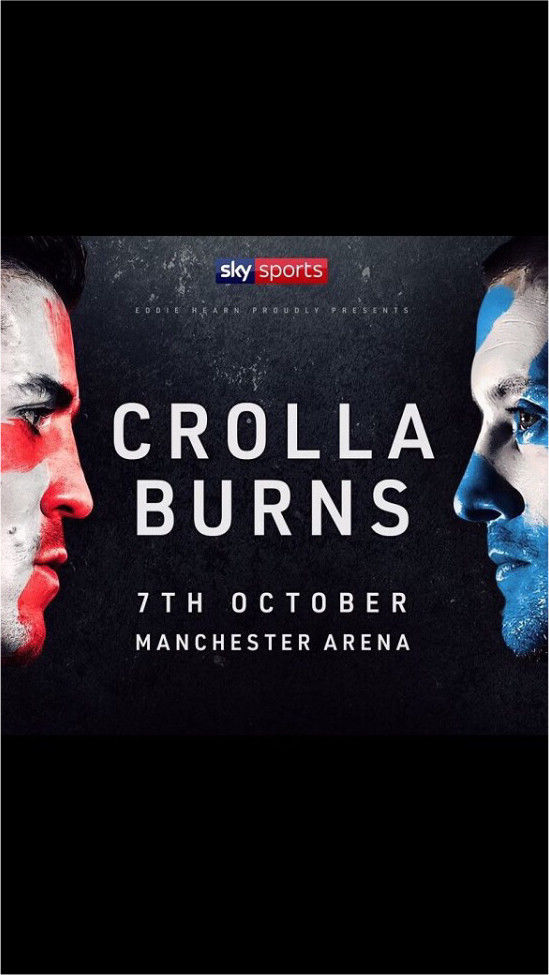 In programma: Anthony Crolla (31-6-3) vs Ricky Burns (41-6-1) in 12 round; Sam Eggington (21-3-0) vs Mohamed Mimoune (18-2-0) per il titolo europeo welter; Robbie Barrett (15-2-1) vs Lewis Ribson (12-0) per il titolo britannico dei leggeri.