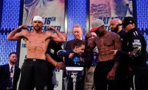 Operazioni di peso a Londra per il titolo Wbo dei medi, in programma domani alla Copper Box Arena. Sulla bilancia Billy Joe Saunders (24-0, 12 ko) e Willie Monroe jr (21-2-0, 6 ko). Entrambi sono sotto il limite della categoria. Poi si mettono in posa per le foto di rito.