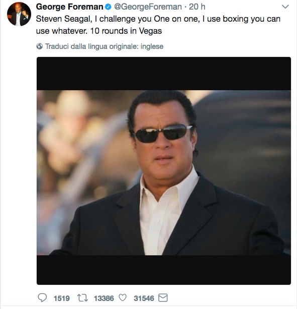 George Foreman ha lanciato, via Twitter, la sfida a Steven Seagal.