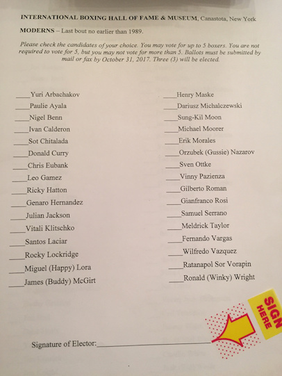 La lista dei sogni è composta da trentadue nomi (foto sotto). Una giuria di giornalisti, campioni ed esperti internazionali dovrà sceglierne tre, i tre pugili che meritano di entrare quest’anno nell’Internationl Boxing Hall of Fame. Le votazioni si chiuderanno il 31 ottobre, il risultato si conoscerà in dicembre, la cerimonia avverrà il 10 giugno a Canatosta (New York).