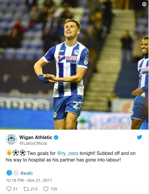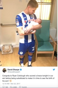 David Sharpe, il presidente del Wigan, posta su Twitter la foto del neo papà che culla il piccolino. È ancora con la divisa della squadra…